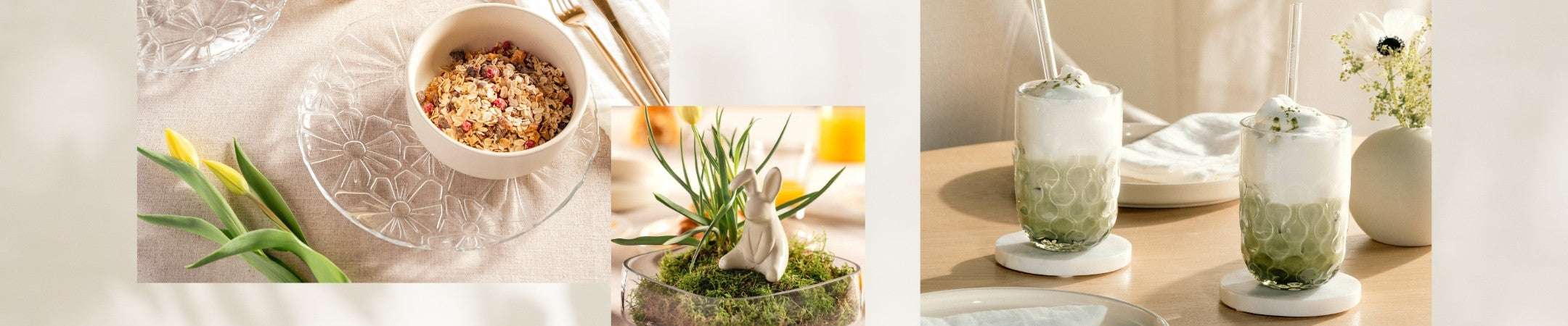 Dekorative Elemente: Von Osterhasen über Tulpen bis hin zu Schmetterlingen – die dekorativen Elemente aus Glas bringen den Frühling direkt in Ihr Wohnzimmer.